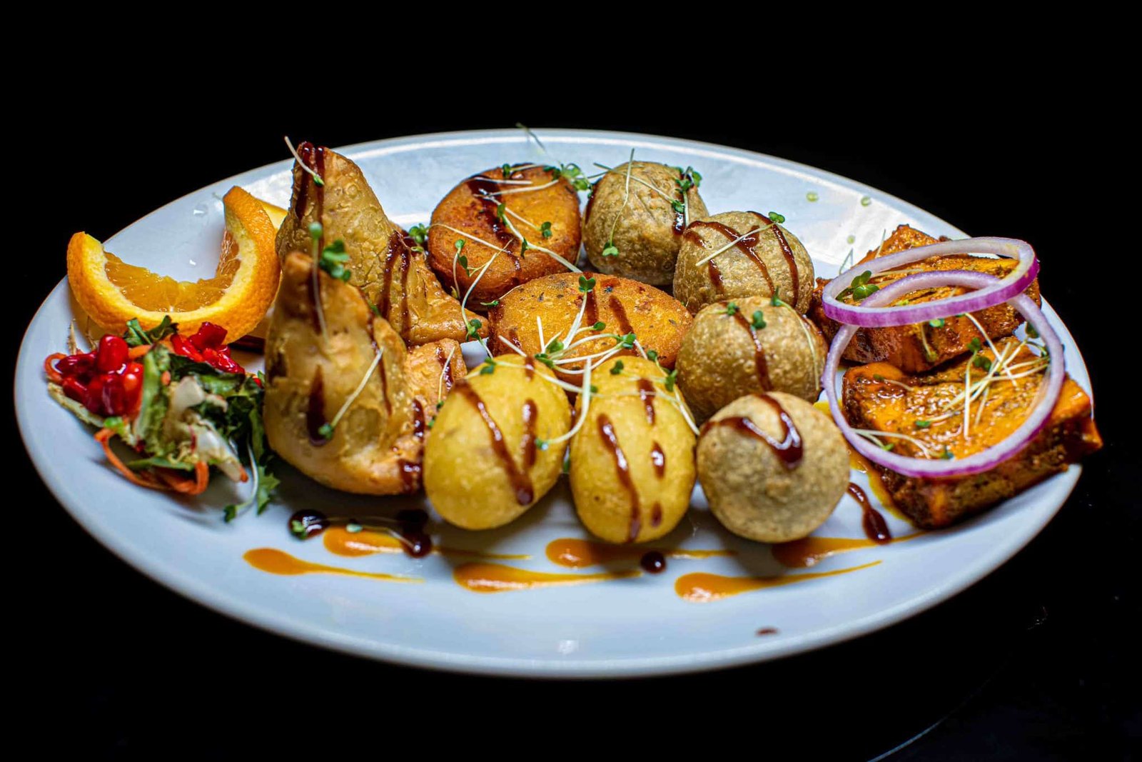 From vada pav puff to pav bhaji, dabeli puff, and aloo tikka chaat, The Bar of Spice & Spirits offers an unforgettable street food experience. Each dish is carefully prepared with authentic Indian spices and techniques, making it perfect for dine-in or takeaway.